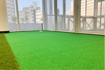 飛距離の目安がほぼコースと同等。手前50ヤードは天然芝なのでアプローチの感覚を練習するのに最適です。左側から打席番号1~30番。30番打席が左打ち専用打席となります。